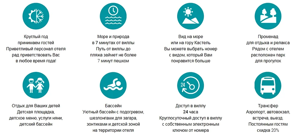 Отель «Вилла Валентина» нацелен на семейный отдых, здесь все способствует этому. Общая безопасность гостей, комфорт для мам и детей, услуга няни, ресторан в вилле, детское меню, коляски, стульчики для кормления и спальные кроватки для гостей предоставлены бесплатно. Если у нас возникают спорные ситуации, мы всегда стараемся прийти к соглашению.