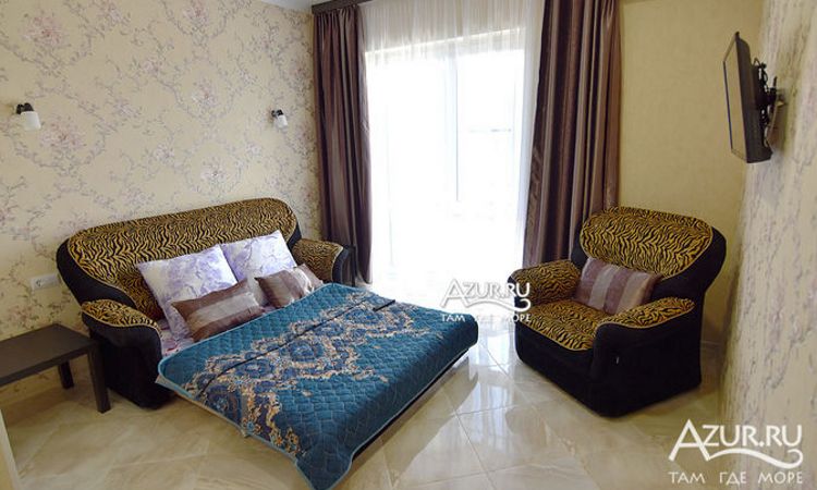 Кухня: общая Санузел: в номере Мебель: двуспальная кровать, прикроватные тумбочки, раскладной диван, два кресла, платяной шкаф, туалетный столик, журнальный столик, стулья... Подробнее ... |