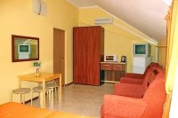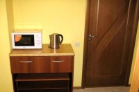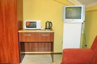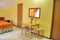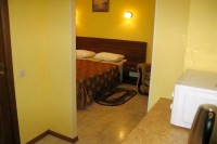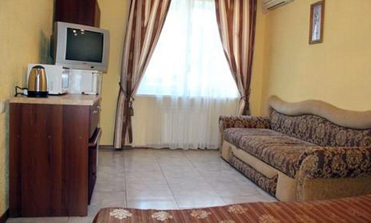 Для тех кто на отдыхе не разлучен с работой предоставляем возможность подключения к интернету (WI-FI). Приветливые хозяева и заботливый персонал гостевого дома, не оставят ни одну вашу просьбу без внимания. Здесь все создано для блага отдыхающих, здесь все создано для вас. Пляж песочный (правее от песочного есть галечный), оборудован шезлонгами, душем, солнцезащитными зонтами, имеются пункты проката водного оборудования. Там же расположен морской вокзал, откуда можно совершить морские прогулки. Любители морской рыбалки имеют возможность порадовать себя хорошим уловом рыбы с выходом в открытое море на различных катерах, где вам предоставят удочки. Рядом с гостевым домом расположена сеть торговых объектов, магазинов. В двух кварталах от гостевого дома находится центральный рынок, множество кафе, пиццерия, парк с аттракционами, качелями и каруселями, детские площадки с машинками и батутом, банки, поликлиника, стоматология, аптеки, стадион, аквапарк взрослый и детский, концертно-карнавальная площадь, дискотеки. Номера класса стандарт-евро повышенного уровня комфортности, с полным комплектом мебели, телевизором, сплит системой, холодильником, сейфом и феном в ванной комнате. Белоснежное постельное белье позволит ощутить домашний уют. Для дополнительного размещения в номерах предоставляются кресло-кровать и просторный диван-кровать. Вода холодная и горячая круглосуточно. Уборка номеров и смена белья согласно графика, мусор из номера выносится ежедневно. Полотенца предоставляются только лицевые. ПИТАНИЕ В номерах «Апартаменты» и «Студия», имеется полноценная кухня со всем необходимым. В номерах, 2х - 3х местный «Евростандарт», расположенных на 4-м этаже для удобства отдыхающих имеются мини кухонные уголки (микроволновая печь, чайник, набор посуды, приборы). Во всех номерах 3х - 4х местный «Евростандарт», для удобства отдыхающих имеются мини кухонные уголки (микроволновая печь, чайник, набор посуды, приборы). в номере 4-х местный стандарт для удобства отдыхающих имеется мини кухонный уголки (микроволновая печь, чайник, набор посуды, приборы). Так же в нашем гостевом доме для самостоятельного приготовления пищи предоставляется кухня. Кушать приготовленное можно в столовом зале. Для тех кто не хочет ежедневно на отдыхе стоять на кухне предлагается множество вариантов, где можно покушать, ближайшее напротив нас. В позапрошлом году открылась столовая с широким выбором разнообразных блюд (предложен шведский стол). Стоянка автомашин на 5−6 парковочных мест перед гостиницей бесплатно. К услугам отдыхающих организация трансфера, уборка номера, вынос мусора, смена постельного белья, гладильная доска, утюг, кухня, кухонные принадлежности, столовый зал. Стирка личного белья (доп услуга). Дополнительная уборка или внеплановая замена постельного белья за дополнительную оплату. Прокат колясок (доп.услуга). Для сушки личного белья во дворе гостевого дома оборудовано место с настенными сушилками под навесом от дождя. Расчетный час — для выезжающих — 11 часов дня, для заезжающих — 13 часов. Предоставляемые услуги: Автостоянка Прачечная Место для отдыха Интернет в номерах Столовая Встреча на ж/д вокзале Встреча в аэропорту Можно с детьми любого возраста