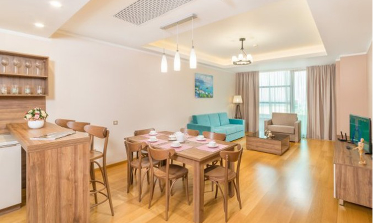 В вашем апартаменте: - спальных мест: 6 - современный продуманный дизайн - отдельная спальня с кроватью king-size - вторая спальня с двумя кроватями - удобный раскладной диван в гостиной - полностью оснащенная кухня, включая микроволновую печь и кофе-машину - барная стойка в некоторых номерах - обеденная зона - комфортная ванная комната - возможен дополнительный санузел ... Подробнее ... |
