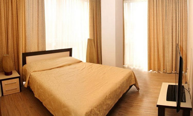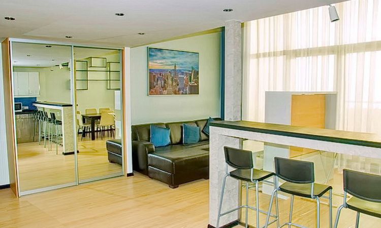 Категория 2: Площадь - 135 кв.м. Большая двухуровневая квартира на 21-м этаже комплекса с огромным витражным окном. Гостиная совмещена с кухней, две просторные спальни, два санузла, один из которых с ванной, а другой с душевой кабиной. Для отдыха три односпальных кровати, двуспальная кровать и раскладной диван. |