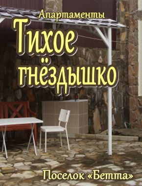 «Апартаменты «Тихое гнездышко» - это индивидуальные апартаменты для семейного отдыха, которые располагаются в хуторе Бетта в горной долине одноименной реки. Уникальный ландшафт, горный воздух, а так же богатая природа - создают незабываемую атмосферу для наших гостей.... Подробнее ...