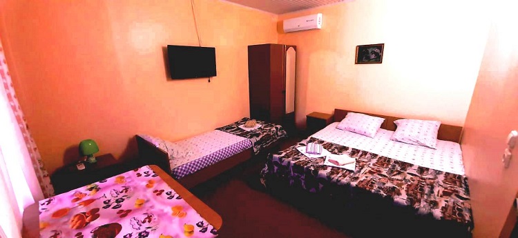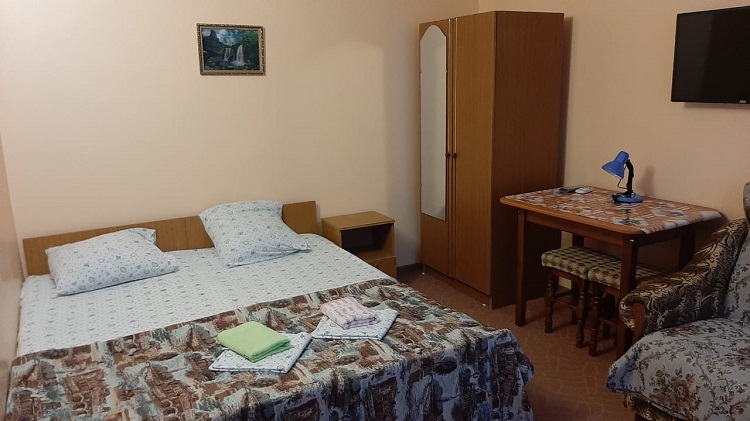 Площадь: 15 кв.м Число гостей: 3 Доп.место: платно Оборудование: холодильник, кондиционер, телевизор, Wi-Fi интернет Удобства в номере: туалет и душ в номере, санузел совмещенный Мебель: 1 двуспальная кровать, 1 односпальная кровать, тумбочки, кресло-кровать, шкаф для белья, стол, стулья. Буфет с посудой и индивидуальный... Подробнее ... |