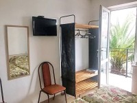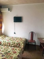 Гостевой дом состоит из 15 номеров. Номера рассчитаны на 2−3−4 человека. В каждом номере — душ, туа-лет, умывальник, ТВ, холодильник, кондиционер (сплит-система). Есть номера с выходом на балкон. Дизайн дома сделан таким образом, что балконы по всему периметру здания. Но есть несколько номеров без балкона. Все стандартные номера расположены на 2−3 этажах. Есть номера улучшенной планировки (большая площадь номера, новая мебель, ванна или душевая кабинка) которые находятся на 4 этаже и 5 (мансардном) этаже. Дополнительное место (раскладушка) возможны только в 3-местном номере без балкона. На первом этаже нашего дома находится столовая, где вы сможете вкусно и недорого поесть. Домашняя кухня с ежедневной выпечкой, шашлык, овощи на вертеле и др. — ждут вас. Рядом находятся еще две столовые. Бронирование номера по предоплате за первые трое суток, оставшаяся сумма оплачивается в день приезда при заселении в номер наличными или переводом на карту сбербанка. Минимальное количество проживания — 5 дней. ВНИМАНИЕ, если при заезде вы не оплатили оставшуюся сумму за проживание сразу по приезду, то хозяйка оставляет за собой право вас выселить из дома без возврата предоплаты. Заселение в номер только по подтверждению брони (лист бронирования) Расчетный час 12:00 • Заезд в номер после 12:30. • Номер освобождается до 11:30 (в день отъезда указанного в бронировании). Расчет по ночам. • При наличии свободного номера возможно раннее поселение в номер. В этом случае доплата за раннее поселение — стоимость за полсуток + заказ трансфера. Круглосуточного администратора в доме нет, поэтому рекомендуем тем, кто приезжает в ночное время заказывать трансфер. Иначе заселять вас в это время будет некому. Дети без места — один ребенок на номер Минимальное проживания — 5 дней Заселение в номер только по листу бронирования. Информацию по наличию мест можно узнать почте. Для бронирования номера просьба присылать на эл. адрес следующие данные: • Ф.И.О. (всех кто едет) • дата рождения полностью (день, месяц, год) на всех кто едет • Точные даты вашего отдыха и категория номера Круглосуточного администратора в доме нет, поэтому рекомендуем тем, кто приезжает в ночное время заказывать трансфер. Иначе заселять вас в это время будет некому. За дополнительную плату возможно заказать трансфер: Стоимость трансфера (машина до 4-х человек): аэропорт с 09:00—21:00 — 700 руб за машину, с 21:00—09:00 (ночное время) — 800 руб за машину. Ж\д Адлер 09:00—21:00 — 600 руб за машину, с 21:00—09:00 (ночное время) — 700 руб за машину. Машина от 5-ти до 8-и человек — 1000 руб. Трансфер при выезде — самостоятельный. Предоставляемые услуги Автостоянка: в 200 метрах от дома платная автостоянка. Прачечная: стирка и глажка - 200 руб одна загрузка Магазин на территории: Магазин находится рядом Место для отдыха: До места отдыха (Курортный городок)100 метров Столовая: своя столовая на первом этаже. Только в летнее время. Рядом еще две столовые. Встреча на ж/д вокзале: день - 600 руб за машину. ночь и раннее утро -700 руб за машину Встреча в аэропорту: день - 700 руб за машину. Вечер - ночь - 800 руб за машину. Можно с детьми с 3 лет: дети до 5 лет с родит. на одной кровати - бесплатно, оплач. только коммунал. услуги 300 руб в сутки