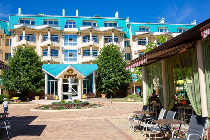 На живописном побережье черного моря уютно расположился современный Пансионат семейного отдыха «Южный Парус», построенный в начале 2008, капитальный ремонт проводился в 2015 г.