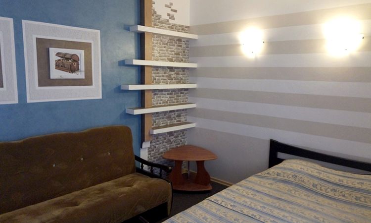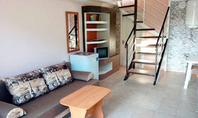 Уютный номер с большой 2-х спальной кроватью и диваном. Благодаря большой площади, проживание в номере будет комфортным. Современный дизайн помещения, мини холодильник и ванная с удобной душевой кабиной делают бытовую составляющую отдыха в Судаке еще более удобной.... Подробнее ...