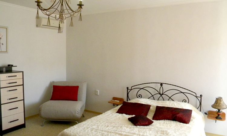 Предлагаем вашему вниманию один из самых стильных номеров нашей гостиницы в Судаке. Авторский дизайн сочетает строгость форм и некоторую легкость, которая характерна для хорошего крымского настроения. Большая площадь номера позволит разместиться в нем всей семьей или дружной компанией.