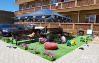 Гостиница оборудована лифтом. На территории находится пиццерия "Жар пицца", азиатская и европейская кухни. Гостеприимный персонал, разнообразная и изысканная кухня нашего кафе – все будет способствовать Вашему хорошему настроению. Рядом расположены рынок, магазины, кафе, столовые, остановка общественного транспорта. До аквапарка "Тики-Так" прогулочным шагом 10 минут Дети принимаются с любого возраста. Дети без предоставления места до 4 – х лет бесплатно. Дополнительные услуги: Организация трансфера с вокзалов Уборка номера ежедневно, смена постельного белья 1 раз в 7 дней, смена полотенец 1 раз в 7 дней 2 кафе на территории: европейская и азиатская кухня с возможностью приобретения питания за дополнительную плату «меню-заказ» Бесплатный WI –FI интернет на ресепшене Организована детская площадка Расстояние: 232 м до моря Автостоянка: нет Питание: за доп. плату "меню-заказ". Работает летнее кафе с европейской и азиатской кухней Расчетный час: 12.00 мск