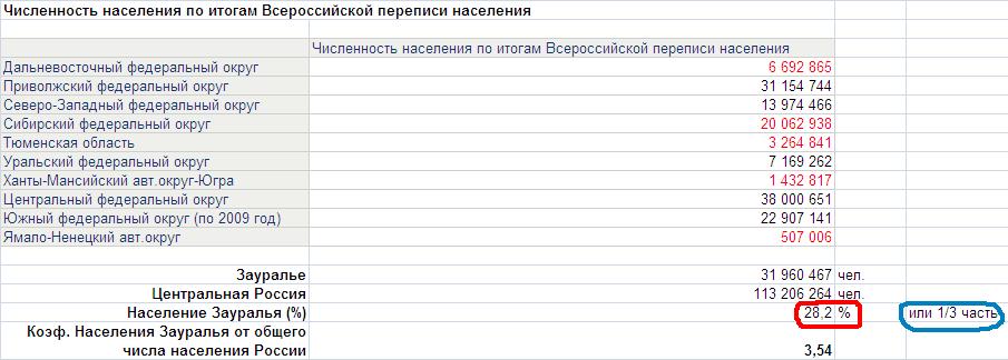 Заметь, Zeeck, в Зауралье проживает лишь 1/3 часть (31 960 467 человек) от всего населения России ( для сравнения - это всего 3 Москвы