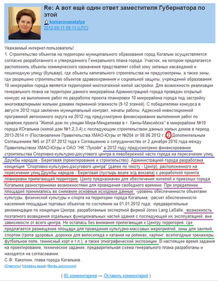 Не осталась без внимания прилегающая к Центру территория, где предлагается размещение площади для проведения культурно-массовых мероприятий, зоны для зантяий спортом (тропа здоровья, дорожки для велосипеда и катания на роликах, картинг, всепогодные тренажеры, футбольное поле, теннисный корт и т.п.), а также этнографической экспозиции. В настоящее время задание на проектирование, техническое задание, предварительная схема генерального плана разработаны и находятся на согласовании. С.Ф. Какоткин, глава города Когалыма.