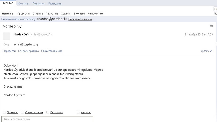 Я направил в компанию «Нордео» письмо с просьбой обозначить сроки строительства этого центра