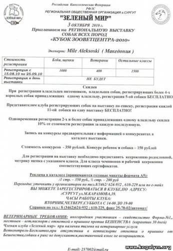Форум Когалым » Городские форумы » Клуб любителей животных » ВЫСТАВКИ СОБАК (расписание выставок нашего региона, приглашения и информация)