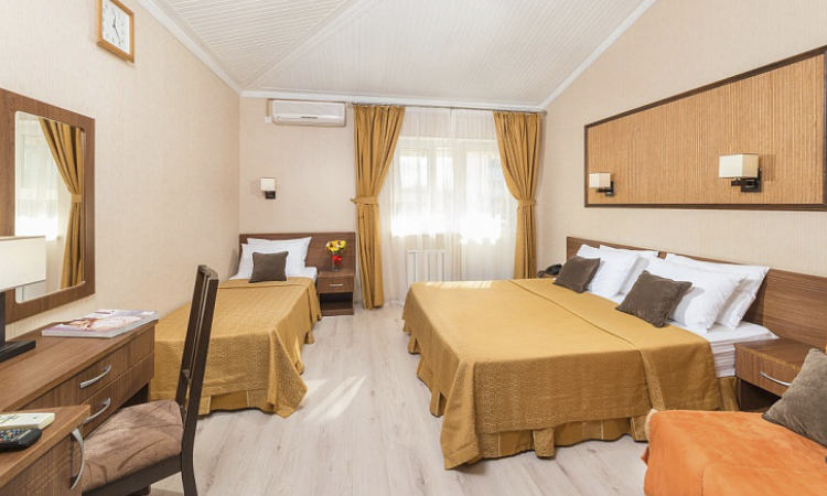 3-местный номер класса стандарт, с видом на центральную пешеходную улицу. Однокомнатный номер с тремя односпальными кроватями. Бесплатно предоставляется: завтрак, сейфовая ячейка, библиотека, интернет wi-fi. ... Подробнее ... |