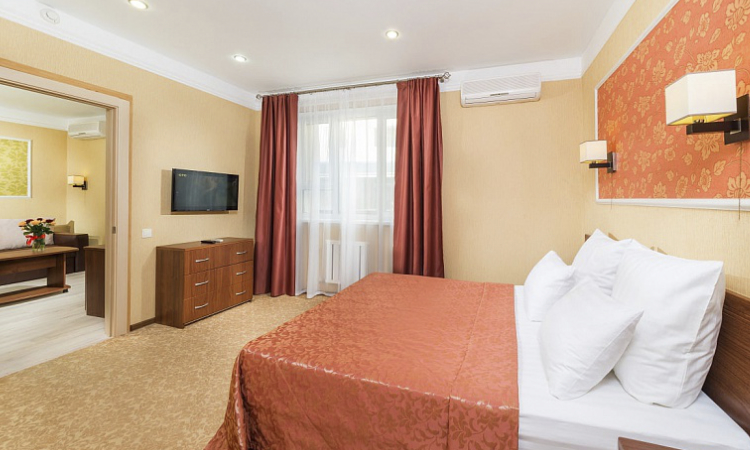 Номер Люкс - гостиная и спальня. Двухкомнатный номер с двуспальной кроватью. Бесплатно предоставляется: завтрак, сейфовая ячейка, библиотека, интернет wi-fi. ... Подробнее ... |