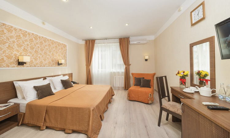 2-местный номер класса стандарт «комфорт», с видом на центральную пешеходную улицу. Однокомнатный номер с одной или двумя кроватями. Бесплатно предоставляется: завтрак, сейфовая ячейка, библиотека, интернет wi-fi. ... Подробнее ... |