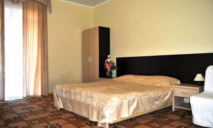 Оснащение номера: спринг-кровать (трансформируется в две кровати или в одну двуспальную), прикроватные тумбочки, шкаф, журнальный столик, спутниковое телевидение, высокоскоростной интернет, сплит-система. Санузел – один на два номера, включает: душевую кабину, умывальник, туалетные принадлежности. Номера данной категории находятся на первом этаже.... Подробнее ... |
