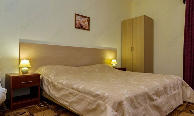 Оснащение: спринг-кровать (трансформируется в две кровати или в одну двуспальную), прикроватные тумбочки, шкаф, журнальный столик, спутниковое телевидение, высокоскоростной интернет, сплит-система. Санузел – один на два номера. Включает: душевую кабинку, умывальник, туалетные принадлежности.... Подробнее ... |