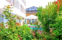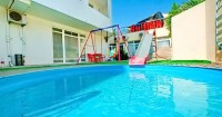 В отеле теплые полы для отдыха в межсезонье, вся мебель выполнена из натурального дерева, кровати оборудованы ортопедическими матрацами и решетками. В номерах категории "Люкс", Вы найдете все необходимое для отдыха на море. Мы приготовили для Вас банные халаты, тапочки. Ваш отдых начинается с момента прибытия в Краснодарский край. Представитель отеля встречает гостей на вокзале или в аэропорту и сопровождает до отеля. На территории отеля к услугам гостей: кафе-бар, 2 бассейна, детская игровая площадка, спутниковое телевидение, интернет.