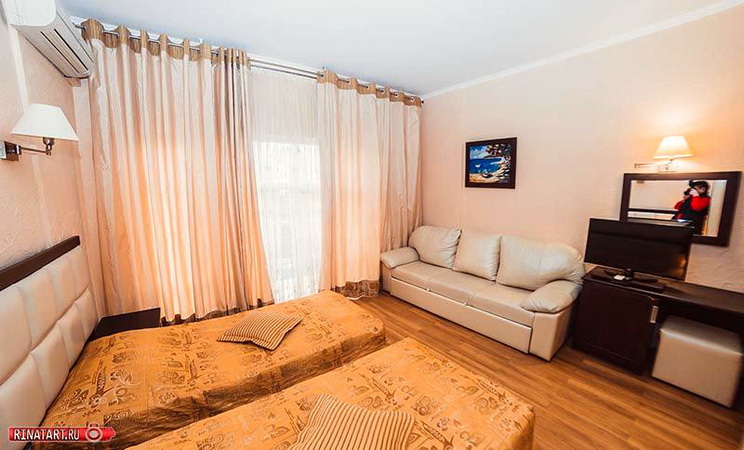Наш Комплекс находится в самом престижном месте отдыха в курортном приморском поселке Витязево, который входит в состав лучшего Российского курорта Анапа. Гостиничный комплекс «Марина»- это три пятиэтажных корпуса, выполненных в современном архитектурном стиле. Комплекс зданий прекрасно вписывается в уютный ландшафтный дизайн красивой, обширной и обустроенной территории Зеленая обширная территория отличается изысканным дизайном ландшафта: множество цветов, редкие сорта деревьев и кустарников, среди которых можно увидеть не только знакомые ели и сосны, тую и можжевельник, но и банановые пальмы и тюльпановые деревья. На новой, прекрасно-озелененной территории - рукотворный пруд с горкой, возле которого разместились маленькие беседки-места для отдыха. Здесь же, - гриль-бар на 30 мест. Удивительно красива территория Отеля вечером, когда зажигаются вечерние огни. Расчет дополнительных мест в номерах «Стандарт»: Дети от 3-х лет до 12-ти лет скидка за проживание 40% на дополнительном месте, второе дополнительное место 60% от стоимости основного места. Дети до 3-х лет принимаются бесплатно. Питание - «Шведский стол». Для взрослых один прием пищи - 480 руб. Дети от 2-х до 12-ти лет скидка 50%, дети до 2-х лет бесплатно. Один прием пищи (обед или ужин) на выбор. Расчетный час: 12 часов. Время заселения в номер: 14 часов.