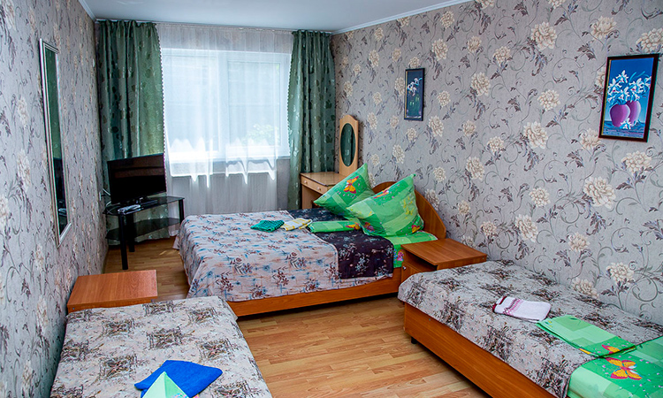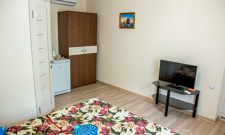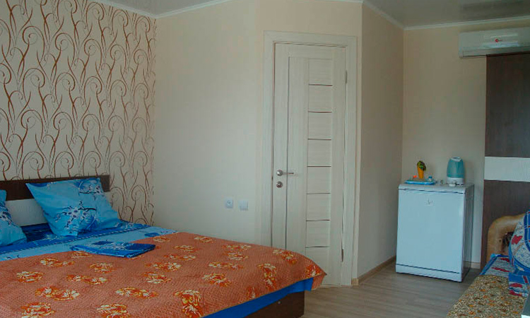 Номера для размещения 2-3-4-х гостей. Каждый номер оборудован необходимой мебелью: двуспальной кроватью, шкафом, прикроватными тумбочками. В номере: телевизор, сан. узел, душ, сплит-система, холодильник, умывальник.