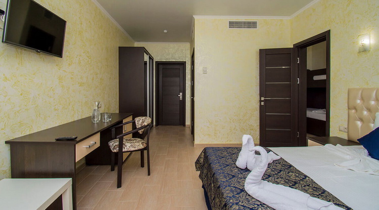 В стоимость проживания включены: охраняемая автостоянка, занимающая весь первый этаж отеля GRAND Noy, пользование открытым взрослым бассейном (18*8м2), открытым детским бассейном (3*6м2), вход на пляж «Радужный», анимация, спортивная площадка с мягким резиновым покрытием, детская площадка, детская оборудованная комната, тренажёрный зал, настольный теннис, wi-fi, а также приветственный бокал вина на ужин.