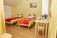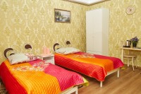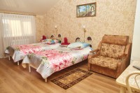 При гостинице работает финская сауна с бильярдом и караоке. В гостинице так же есть обеденный зал и кухня, что позволит вам с комфортом проживать в нашей гостинице не только короткое, но и длительное время. Цены на групповые и корпоративные заезды рассчитываются индивидуально по заявке заказчика. Широкий спектр услуг :24-часовое обслуживание; зал для совещаний; прачечная; бесплатный WI-FI; услуги ксерокса; заявка на проведение мероприятия; побудка по просьбе гостя; трансфер; размещение детей до 7 лет без предоставления спального места-бесплатно; ежедневная уборка номеров и др. Представленные номера (для некурящих), выполнены в классическом стиле и оснащены по гостиничным стандартам. Категории номеров: 2-х местный стандартный, 2-х местный с 2-мя раздельными кроватями (+ кресло кровать), 3-х местный, семейный. Номерной фонд-11, стоимость за сутки от 1500 руб. Бронирование в отеле бесплатное. Уважаемые гости, наш персонал поможет решить Вам вопросы, которые возникнут у Вас во время проживания в нашем отеле ! Вас ждут: тихая обстановка, доброжелательный персонал, теплая атмосфера и гостеприимство. Так же, постоянных гостей мы счастливы порадовать приятными скидками и акциями.