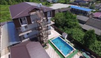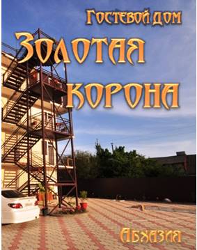 Гостевой дом "Золотая корона" приглашает отдохнуть в райском уголке солнечной Абхазии - в поселке Цандрипш. Дом находится в двух минутах ходьбы от моря. Дорога к морю проходит по тихой зеленой улице, абсолютно ровной и прямой. Пляж галечный, немноголюдный, пляжная полоса достаточно широкая. Морская вода чистая и прозрачная. Гостевой дом открыт круглый год. В нем с радостью встречают каждого гостя! Территория: территория дома очень просторная, имеется бассейн, двор выложен тротуарной плиткой, в клумбах высажены экзотические цветы, имеется большой мангал, на котором готовятся вкусные шашлыки для гостей. Также на территории гостевого дома "Золотая корона" в Цандрипше работает своя столовая, есть бесплатный Wi-Fi интернет, детская площадка, охраняемая парковка. В пользование гостям предоставляются стиральная машина, утюг с доской. Номера: номерной фонд состоит из 40 номеров категории "Стандарт" вместимостью от 2 до 4 человек. В каждом есть индивидуальный санузел (душ, туалет, раковина), телевизор, холодильник, сплит-система и новая мебель. В номерах со 2 по 4 этаж также имеются балконы, с которых открывается великолепный вид на Кавказские горы и Черное море.