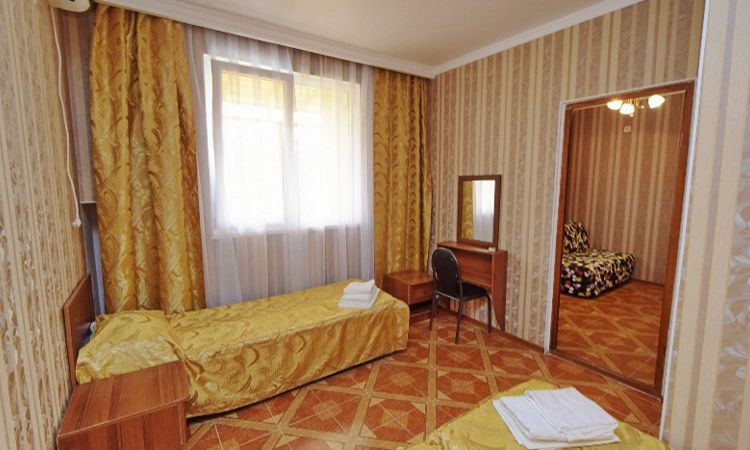 Кухня: общая Санузел: в номере Мебель: три односпальные кровати, прикроватные тумбочки, шкаф для одежды, туалетный столик... Подробнее ... |