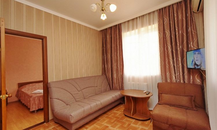 Площадь: 30 Кухня: общая Санузел: в номере Мебель: односпальные или двуспальная кровати, диван-кровать, кресла, шкаф, пуфики, прикроватные тумбочки, журнальный столик, туалетный столик, комод, вешалка Примечания: кондиционер и телевизор в каждой комнате.... Подробнее ... |