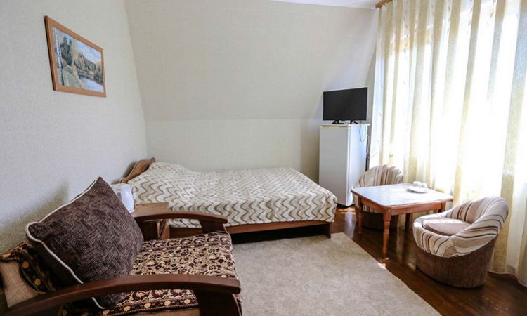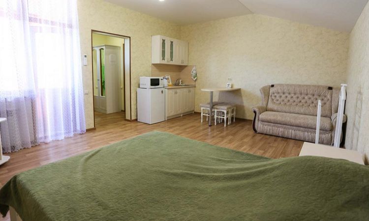 К вашим услугам номера люкс и стандарт. Номера люкс состоят из небольшой прихожей, комнаты с кухней, балкона и санузла (душ/туалет). Удобства: сплит-система, телевизор, холодильник, микроволновка, электрочайник, раковина, набор посуды, на балконе стол и стулья для отдыха. Номера - просторные. Разместить можно до 4 человек.