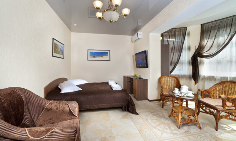 Описание номера: Площадь до 40 кв.м., одна двухспальная кровать, санузел с душевой кабиной, сплит-система, ж/к телевизор, холодильник, балкон, кресло.... Подробнее ...