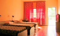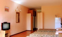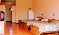 Несколько шагов из ворот, и вы уже на воде. Очень удобно для серферов и кайтеров. Кататься на лимане совершенно безопасно, потому что наибольшая глубина в лимане 1,7метра. Это рай для серферов и кайтеров, особенно для новичков. Но при желании, вы можете перейти на море. Всего лишь один галс через лиман, потом около 50 метров пешком через песчаную косу, и вы в открытом море.Мы имеем на участке отличное парусохранилище (70 кв.метров). Там вы можете хранить(бесплатно) ваши паруса ,кайты и доски. Конечно же, у нас отдыхают не только серферы и кайтеры . Гостевой дом "Аквилон" также идеально подходит и для семейного отдыха,для пар и одиночек. Для комфортабельного отдыха у нас есть все условия: комнаты большие (30 и 38 кв.метров),стены толстые (40 см),накрыты бетонными плитами, высота потолков 2.7 метра. Это создает полную звуко и теплоизоляцию. В каждом номере есть большая изолированная душевая комната с туалетом и раковиной для умывания. Горячая и холодная вода у нас есть всегда и без каких либо ограничений. В каждой комнате есть большой телевизор и ресивер для приема спутниковых телеканалов , а также кондиционеры и холодильники в каждой комнате. Рядом с комнатами имеется полностью оборудованная летняя кухня(20кв.м)с газовой плитой и просторной верандой(50 кв.м), где вы можете готовить себе сами. Можете вы воспользоваться услугами 3 частных кафе, которые находятся на расстоянии 20 метров от нашего дома. Никаких проблем с питанием у вас не будет. На территории участка растут десятки фруктовых деревьев : вишни, сливы , абрикосы , миндаль,шелковица. Настоящий фруктовый сад. На этот сад смотрят окна и выходят двери каждый комнаты. Участок у нас очень большой (66 соток), а домиков для гостей совсем немного и поэтому у нас всегда тихо и спокойно. Все чувствуют себя у нас, как на собственной даче в саду. На нашем просторном участке хорошо играть детям. Для них есть игровая площадка с песочницей. Родителям можно не беспокоиться за них, т.к. калитка закрывается на ключ, который будет у каждого жильца, а посторонние к нам не попадут.Весь участок обнесен по периметру забором 2,5 метра из природного камня. Ваши машины вы можете ставить прямо напротив своей комнаты (бесплатно). Интернет(Wi-Fi ) бесплатно! Цены на проживание
