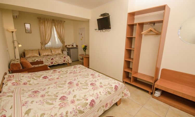 В номере (S=20м2) три раздельные кровати, кондиционер, TV, интернет Wi-Fi, холодильник, электрочайник. Санузел (душ). Возможна установка дополнительного места.