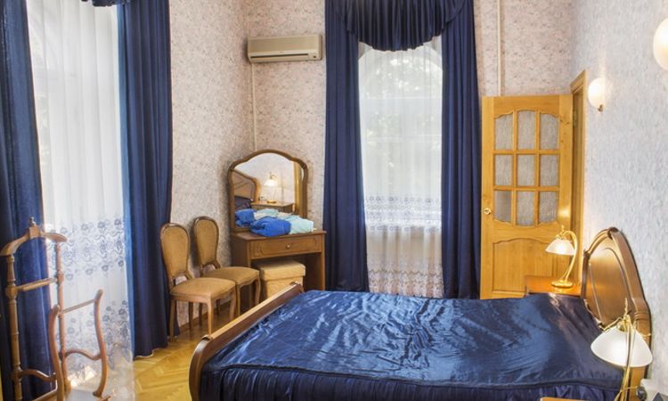 Площадь 15 - 18 м, 1 основное место, душ, телевизор, холодильник, электрочайник, телефон, интернет в номере (платно), фен, кондиционер, сейф.