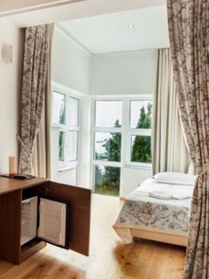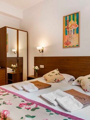 Общая площадь 18 кв.м. Дополнительное место — 1 В номере: одна широкая французская кровать (категории «double») или две раздельные (категории «twin») с ортопедическими матрасами, две прикроватные тумбочки, гардеробный шкаф, комод с зеркалом – создают ощущение домашнего уюта, а наличие кондиционера, плазменного телевизора, мини-бара и сейфа — гармонично дополняют уровень комфорта. Из окна номера вид во двор.