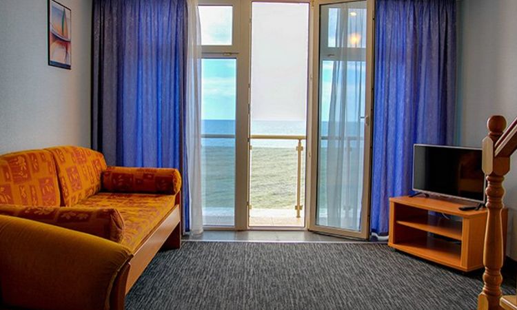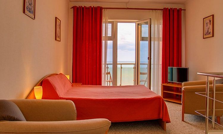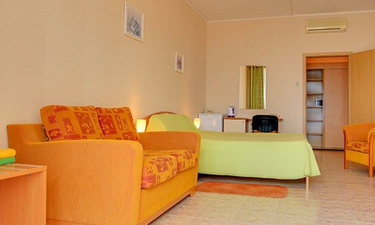 Просторный однокомнатный номер с большой двуспальной кроватью, мягким диваном и креслами. В номере есть все удобства. Ванная комната оборудована душем, умывальником, унитазом, феном, необходимыми банными принадлежностями. Раз в три дня гостям приносят новые чистые полотенца.