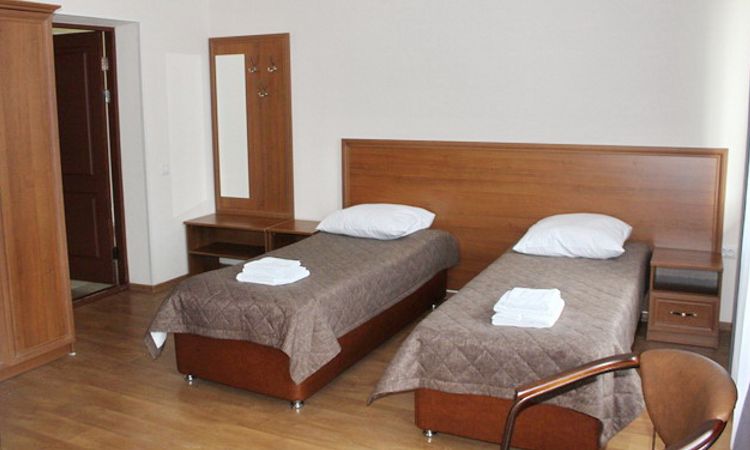 В номере: - 2 односпальные кровати с прикроватными тумбами; - санузел с душевой кабиной; - холодильник; - телевизор; - шкаф; - стол со стульями; - посуда; - набор из 3-х полотенец.... Подробнее ... |