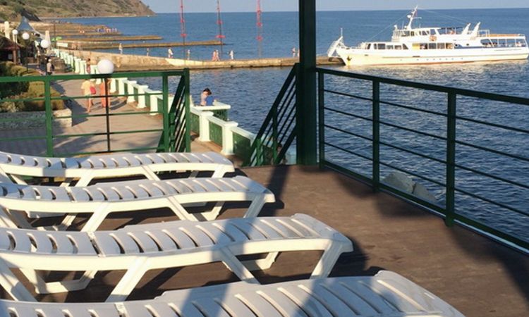 Целый ряд шезлонгов на втором ярусе навеса ожидает своих клиентов. Оцените прекрасный панорамный вид на проплывающие корабли, дельфинов и Медведь-гору! Приятным дополнением будет чтение любимой книжки под легкую расслабляющую музыку. А чтобы искупаться в море, достаточно только спуститься вниз по лесенке. &n...; Подробнее ... |