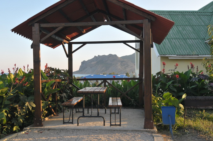 Гостевой дом «Вилла Елена-F» идеально подойдет для спокойного семейного отдыха, а также для всех тех, кто ценит комфорт, высокий уровень сервиса и индивидуальное обслуживание. Вечером можно отдохнуть в маленьком дворике, пожарить шашлыки в тени виноградника и поболтать в приятной компании, расположившись на уютной зеленой террасе. Во дворе много зелени, есть навесы от солнца, удобные кресла, стулья и столики.