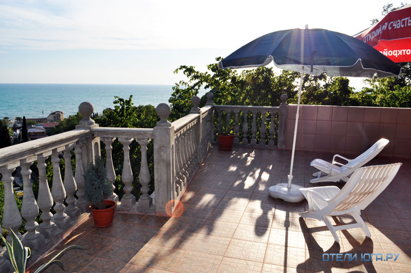 На каждой террасе расположены отдельная кухня-столовая на 3-4 номера, просторная площадка с шезлонгами для принятия солнечных ванн, солнцезащитные зонты, качели, шатры. С любого уровня гостевого дома открывается потрясающий вид на Черное море.... Подробнее ... |
