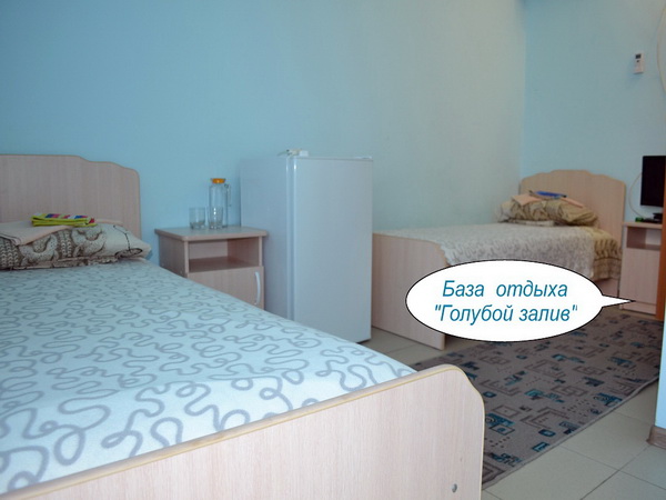 Центр семейного отдыха " Голубой залив" расположен в тихом, спокойном месте, удаленном от шумного центра, в 380 метрах от прекрасного песчаного пляжа ( 4-5 минут ходьбы).