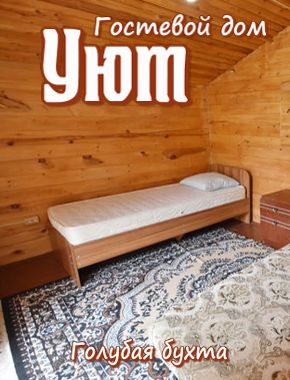 Гостевой дом "Уют" - это уютные, экологически чистые, деревянные домики, расположенные в очень тихом месте. Пляж Голубой(Рыбацкой) бухты, из мелкой гальки, находится в пяти минутах ходьбы. Вся необходимая инфраструктура: магазины, аптеки, остановки общественного транспорта и т.д. находятся в шаговой доступности.... Подробнее ...