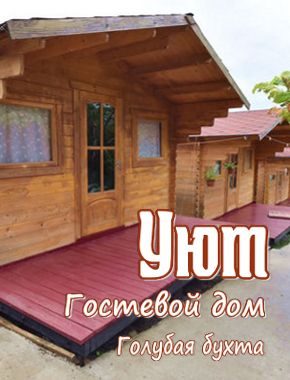 Гостевой дом "Уют" - это уютные, экологически чистые, деревянные домики, расположенные в очень тихом месте. Пляж Голубой(Рыбацкой) бухты, из мелкой гальки, находится в пяти минутах ходьбы. Вся необходимая инфраструктура: магазины, аптеки, остановки общественного транспорта и т.д. находятся в шаговой доступности.