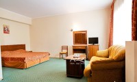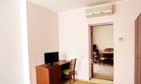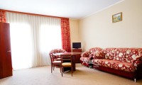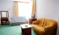 В каждом номере: две односпальные кровати(или одна двуспальная), прикроватные тумбочки, телевизор, шкаф, сплит-система, обеденный стол, набор посуды; и гостиная: раскладной диван и кресло, платяной шкаф, телевизор, сплит-система. Возможно размещение до 6-х гостей. Есть номера с видом на море. Площадь 45 кв.м